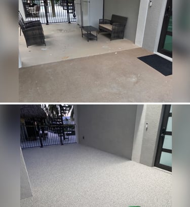 Our coatings division, Tropical Epoxy Coatings, focuses on high-performance epoxy systems for concrete floors, patios, and commercial spaces. We use industrial-grade, UV-stable products designed for longevity, durability, and coastal environments — never DIY or big-box store materials.
